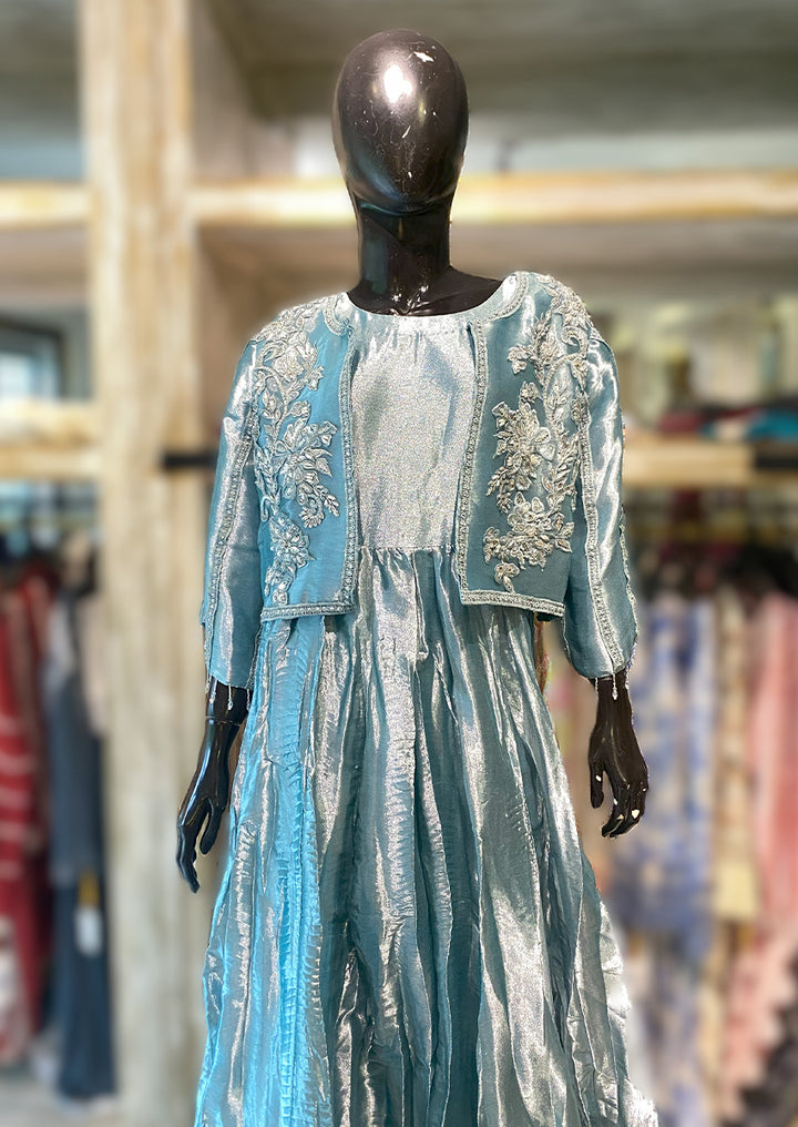 This Suit has been crafted in an exceptionally beautiful manner featuring a jacket and inner layer adorned with exquisite handwork the design showcases remarkable craftsmanship where intricate Naqshi, Dabka, Stones embellishments have been delicately applied enhancing its elegance and making it truly stunning.