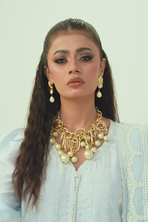 The elegance Kurta set is crafted from pure Sheesha silk offering both style and comfort. The shirt features exquisite embroidery and handwork adding a refined artistic touch to the design. The sleeves and back are adorned with delicate embroidery paired with pure sheesha silk Dhaka Pants.