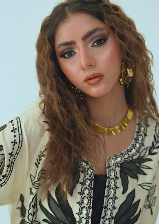 This elegant ensemble features a Sheesha silk shirt beautifully adorned with delicate organza appliqué work, adding a refined and luxurious touch. It is paired with a stylish bell-bottom pant crafted from Sheesha silk, offering a graceful and modern silhouette. The look is completed with a lightweight organza dupatta that enhances the overall sophistication of the outfit, making it ideal for festive occasions and formal wear.