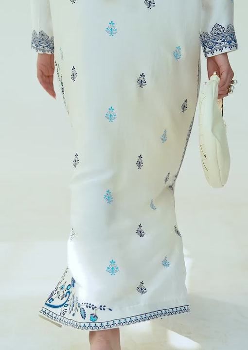 This luxurious Pure Sheesha silk kaftan is adorned with intricate embroidery and fine hand embellishments of pearls, stones, and sequins, meticulously crafted to create a graceful, elegant, and timeless look.